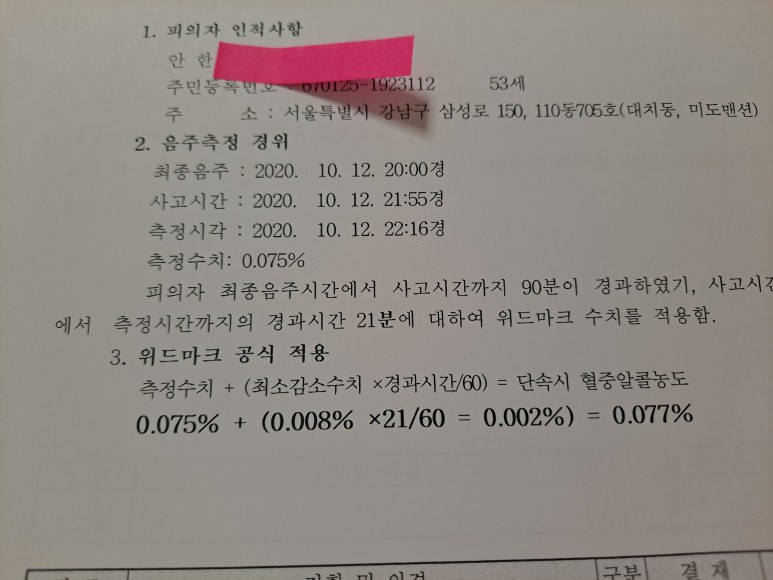 3. 사고가 발생한 경우에는 위험운전치상죄를 적용할 수 있기 때문에 높은 처벌의 수준을 예상하며, 측정수치의 경우도 0.2%를 초과하면 2년 이상 1천만원 이상이 되므로 이 점을 잘 고려해야 합니다.