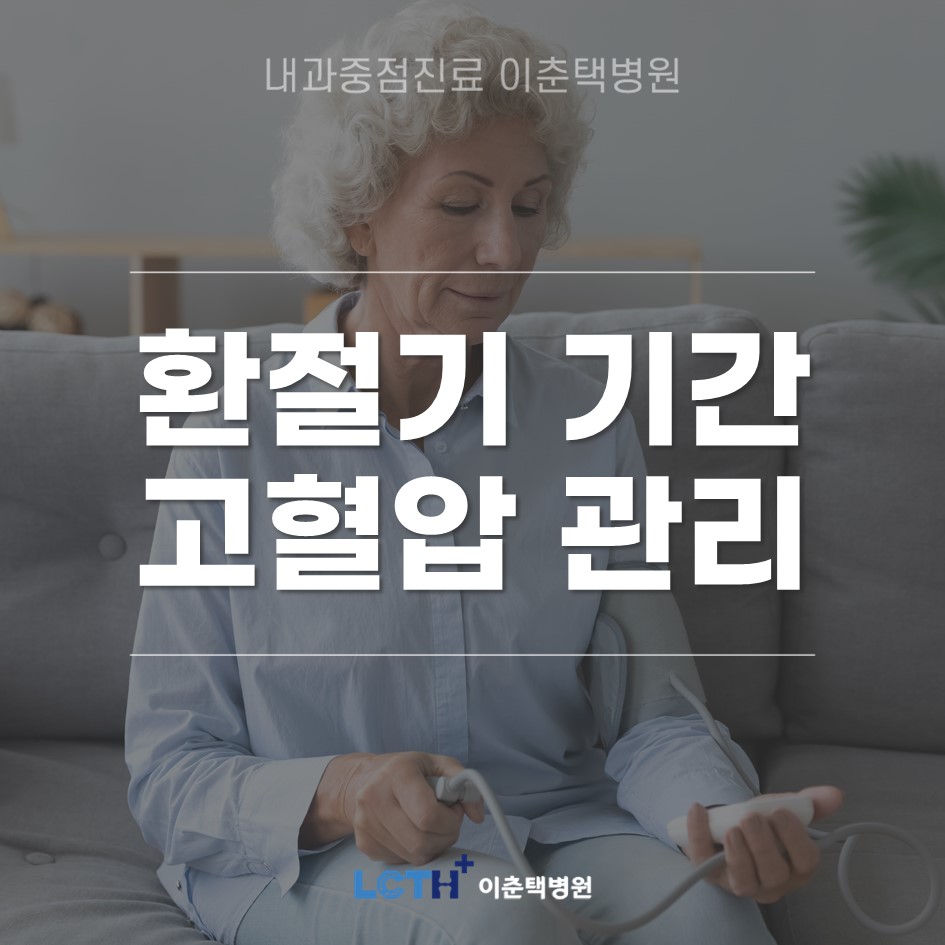고혈압이 일반적인 질환이 되고 나서 위험한 질환이 아니라고 생각할 수 있으나 고혈압으로 인한 합병증의 위험이 매우 높기 때문에 환절기에 혈압관리를 유의해야 합니다. 환절기 들어 평소와 다른 증상이 있다면 전문의와 반드시 상담하는 것이 좋습니다.