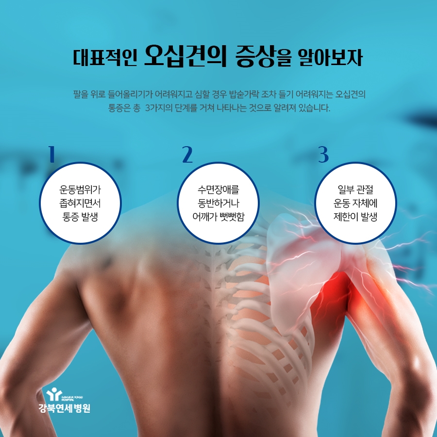 처음에해당하는현상이발생하는경우에는그대로그만둘것이다라는생각을가지고방치하는경우가많다고합니다. 그러나 문제를 해소하지 않았기 때문에 현상이 해소되지 않고 지속적인 통증과 문제를 일으킵니다. 처음에는 올라가 있던 팔을 위로 들어올리기 어려워지는 것은 물론, 심지어 식사를 하는 것조차 어렵습니다.