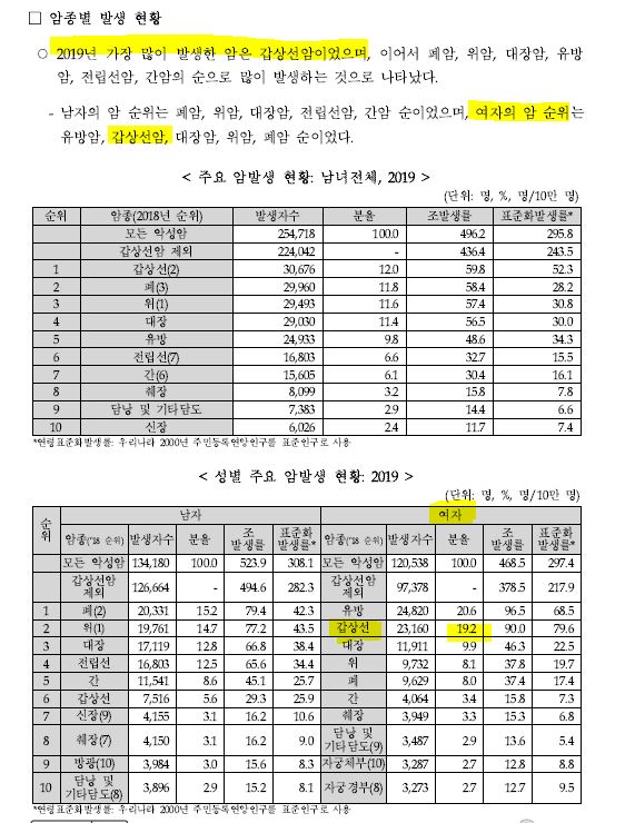 출처 : 보건복지부 12월 30일 보도자료 2019년에 가장 많이 발생한 암은 갑상선암 진단으로 전체 암 발생 현황 중 여자 유병자의 19.2%(2위)가 갑상선암이고 특히 여성분들의 갑상선암 발병률이 높은데, 그 중 20대와 30대, 40대 여성들에게서 갑상선암이 많이 발견되고 있습니다.