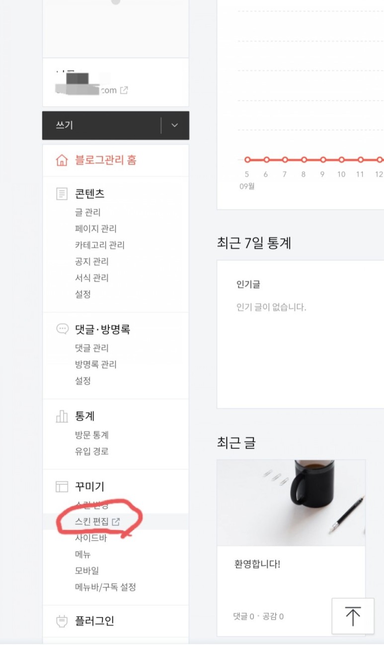 8. 장식에 스킨 편집 클릭!