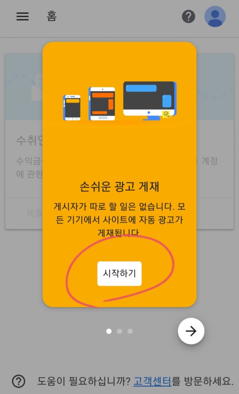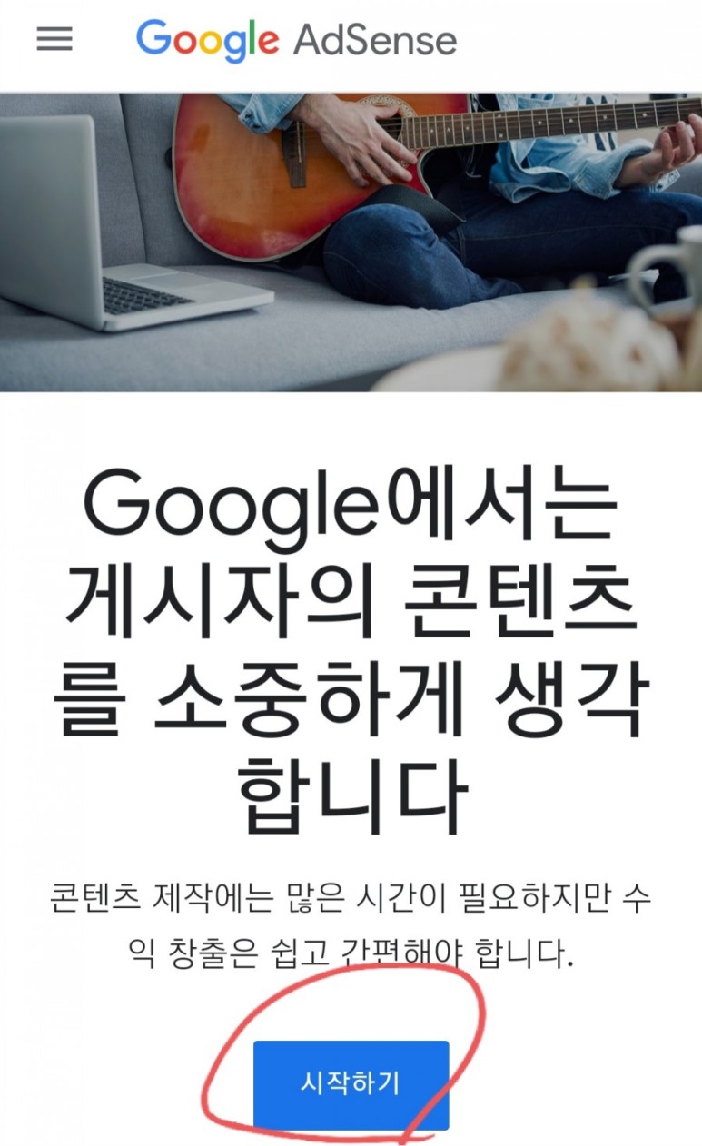 티스토리 등록이 끝나면 구글 애드센스 홈페이지를 방문하겠습니다. 동그라미 보면서 따라오세요~~~