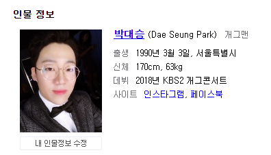 ‘박대승’씨는 2018년 7월 KBS 공채 전형에 합격해 방송활동을 하고 있었고 지난달에도 개그콘서트에 출연했다고 합니다.