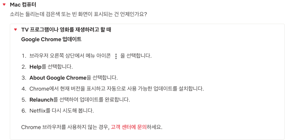 이후 넷플릭스 홈페이지에 공지가 있는 것을 발견했습니다.프링크를 걸어보겠습니다.