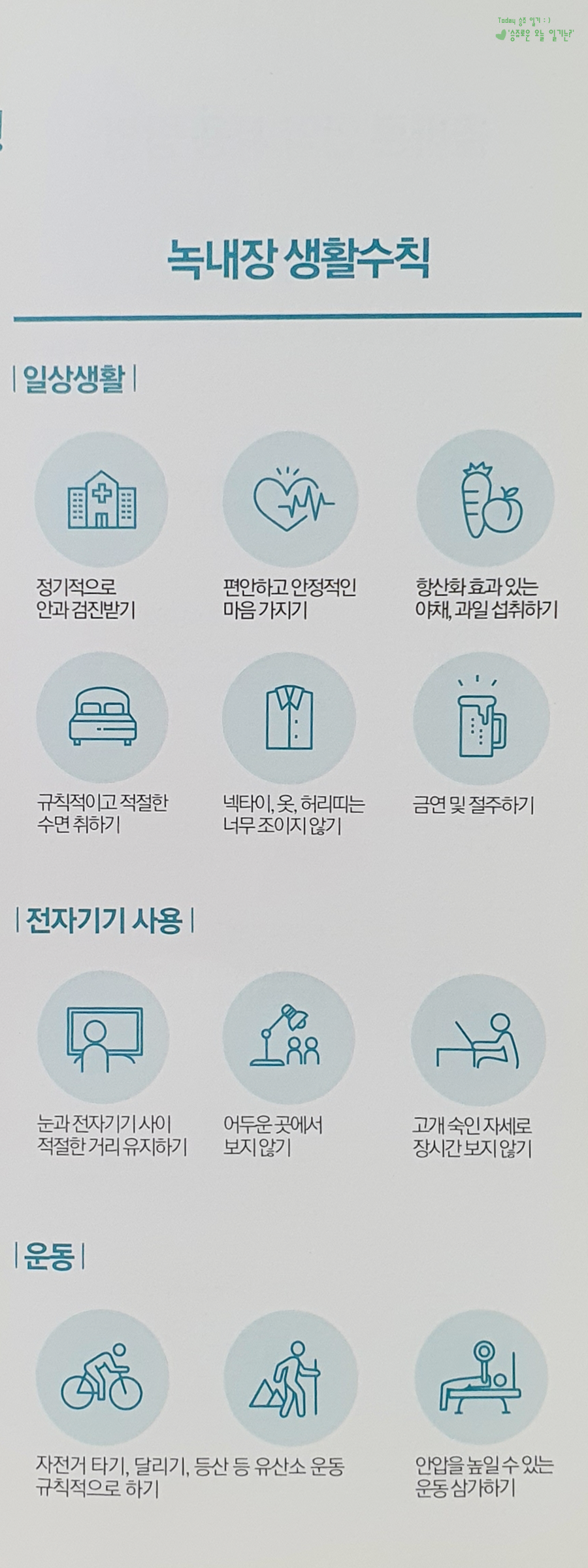 이처럼 녹내장은 시신경이 약해지는 질환으로 한번 손상된 신경조직은 재생되지 않으므로 더 이상 신경이 손상되지 않도록 관리하고 현 상태를 유지하는 것이 가장 중요!!!