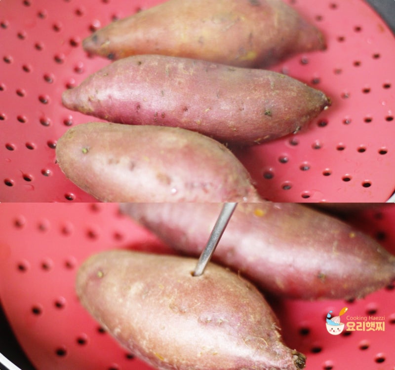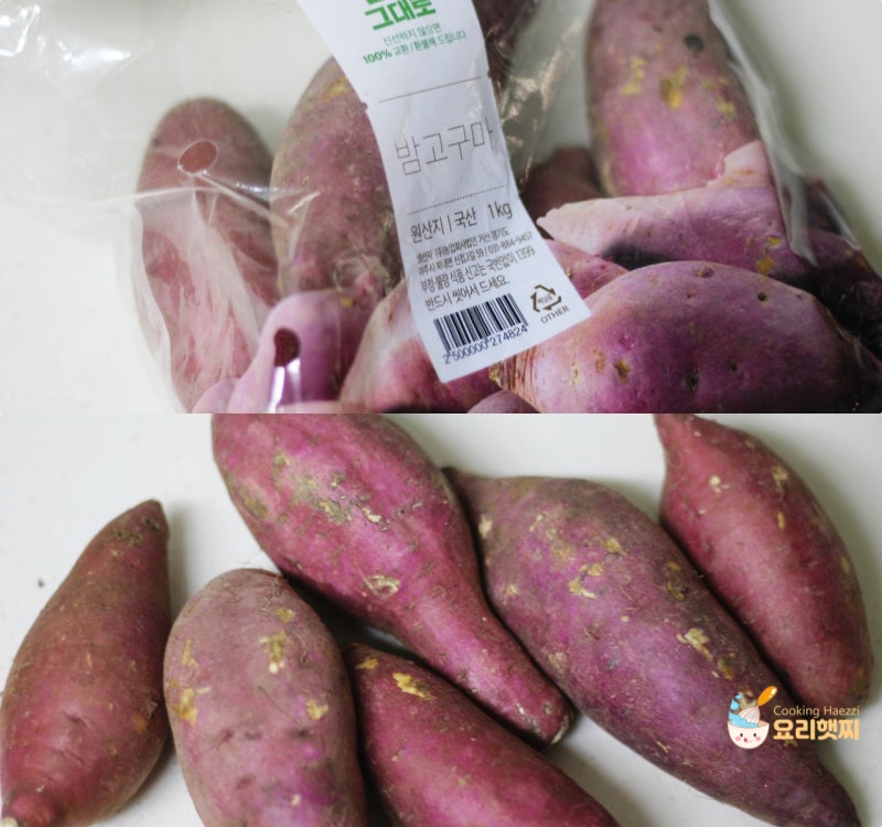 고구마는 한번 깨끗이 씻어주세요~ 물기는 닦아주세요!