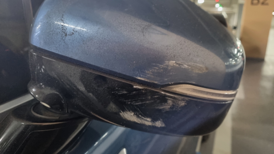 국도를 달리다가 뒷좌석에서 쿵쾅쿵쾅 떨어지는 소리에 뒤를 여유 있게? 돌아서서 옆에 있던 트럭과 접촉!다치지는 않았지만 운전석 쪽을 깔끔하게 4장 모두 먹어 치웠다.