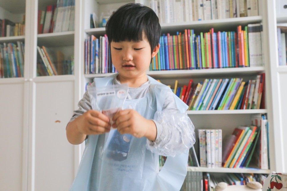 기본구성품에 어린이 안전을 위한 장갑과 앞치마, 투명 팔토시까지 달려있었어요. 이런 세심한 체크가 대단했지만 사실 치치의 놀이터는 어린이집 교사로 일하셨던 엄마가 직접 기획, 판매하는 제품이래요.