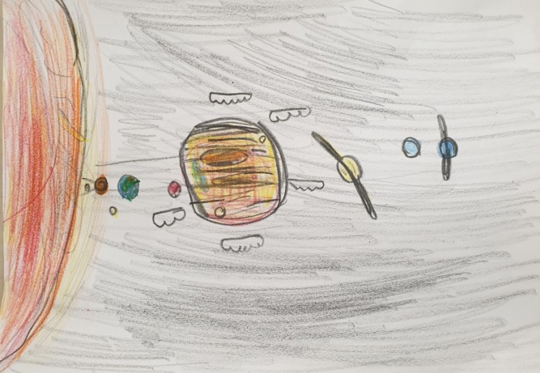 오늘은 어린이집에서부터 하나 그리고 왔어지구 옆에 작은 달이 있다.목성을 어마어마하게 크게 그렸다목성 옆에 저 구름은 뭔지 너무 궁금해