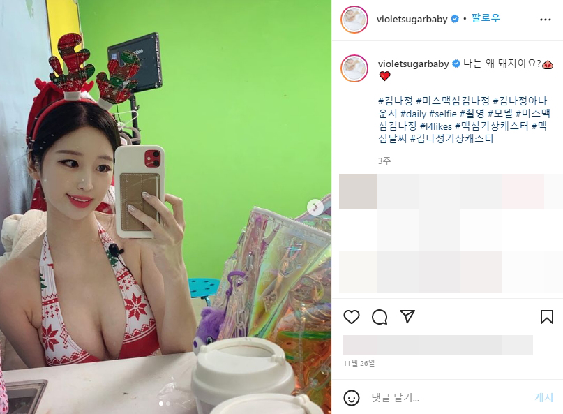 [출처] D컵 김나정 아나운서 몸매 비키니 움직이는 미막콘 우승 맥심레드 표지 사고 기상캐스터 이화여대 나무위키 1992년생 나이 163cm AB형 프로필 인플루언서 모델 인스타그램 캡처 나는 왜 돼지죠??❤️Why am I am pig? 저는 돼지라고 하나요?우리 집집시 양념장?