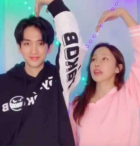 영상속의 미나와 류필립은 한 온라인 플랫폼에서 제공하는 립싱크 콘텐츠를 이용해서 하트를 만들고 있는 모습, 미나는 류필립과 머리 위에 큰 하트를 만들고 싶어하는데 류필립이 계속 다른 하트를 만들어서 웃음을 자아냈습니다.