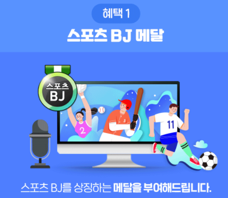 스포츠 BJ로 선정되면 자신의 방송 전에 스포츠 BJ를 상징하는 메달을 받을 수 있을 뿐만 아니라