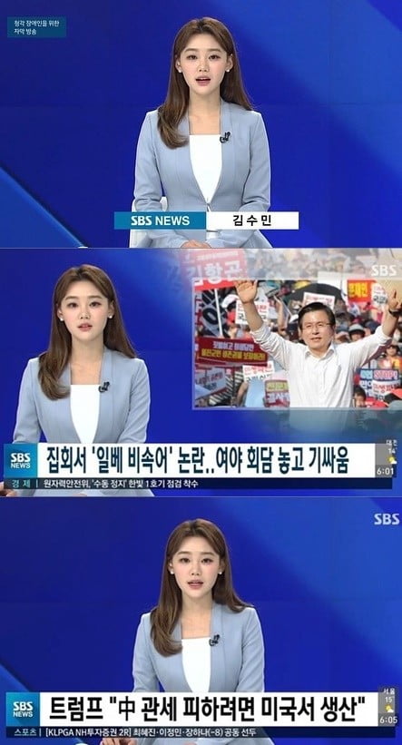 SBS 김수민 아나운서입니다 머리가 자연스럽고 정돈되어 있어요.