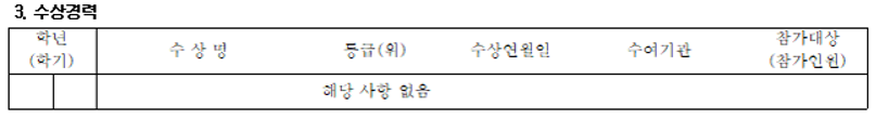 (1) – 2. 수상경력은 학기별로 1개만 기록할 수 있다.