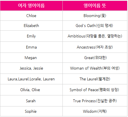 리암이랑 들어본적도 없는데 1등이라니 사실 좀 놀랐어요!!!노아가 2위를 차지하고 있네요:D 노아도 한글 이름이든 영어든 좋은 멀티한 이름이에요. 상위권에도 자주 들어보지 못한 이름들이 몇 개 보이네요. +ㅁ+그리고 저는 세바스찬 하면 나가 있어요! 이것만 생각나는 옛날 사람이에요.다들 우리 아이 영어이름도 예쁘고 의미있게 해주세요. 근데 생각해보니까 여자애들 영어 이름이 예쁜 분들이 훨씬 많은 것 같아요.