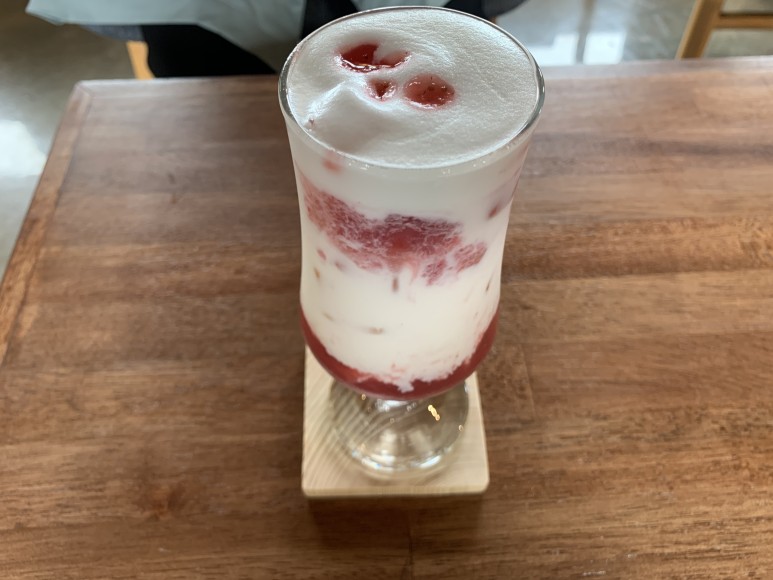 제주도 가수 해바라기 낭낭 카페 메뉴 추천 시골뷰와 음악에 반했는데 이렇게 움짤로 자세히 한번 더 딸기라떼를 보여드리겠습니다:) 딸기가 좋다면 딸기라떼 추천