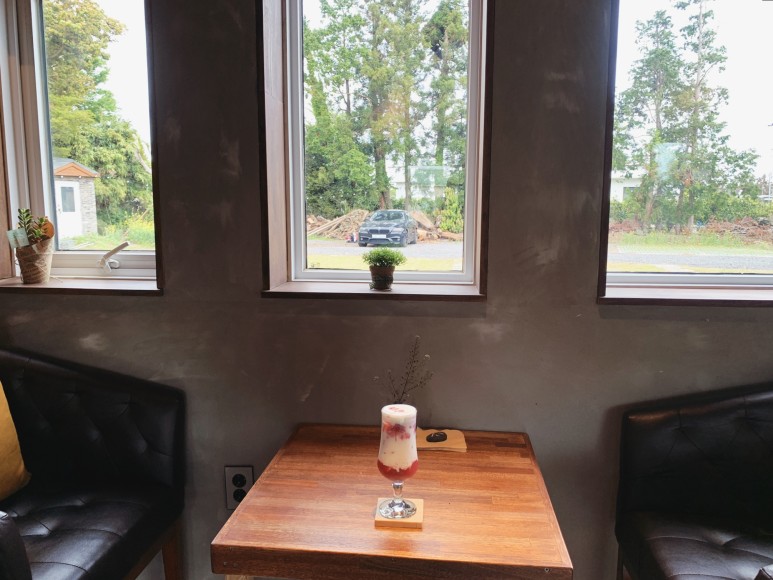 제주도 가수 해바라기 낭낭카페 메뉴 추천 시골뷰와 음악에 반한 곳의 창문이 꼭 액자 같아요!?어디서 사진을 대충 찍어도 기차 안처럼 나온다:) 갸름하고 많은 창문 덕분에 개방감이 느껴지는 낭낭카페