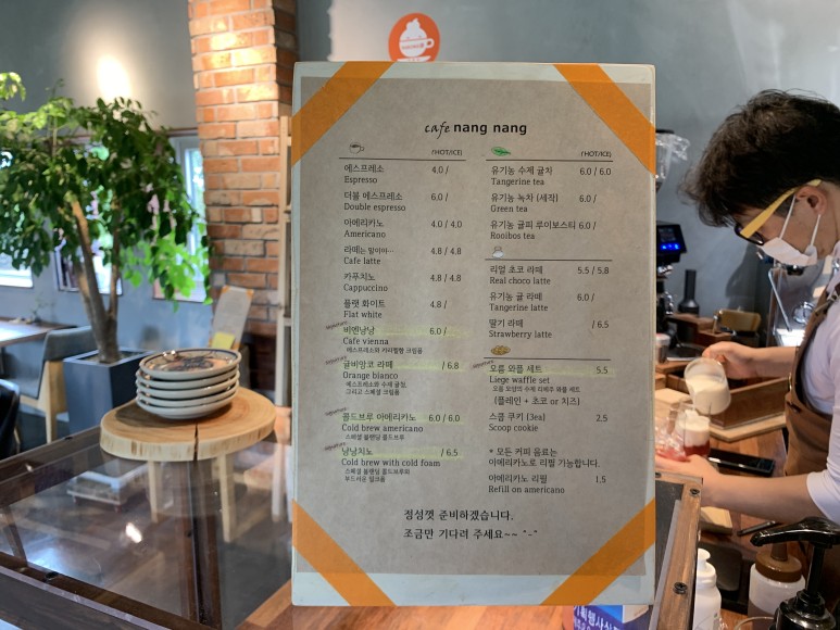 카페 난난에 오시면 귤비앙코라떼는 꼭 시켜주세요.다 손으로 직접 잼도 만들기 때문에 아주 좋아합니다.