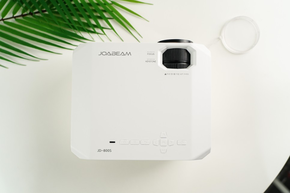 씨지빔의 사이즈는 19.7×16.6×7.8cm이고 무게는 딱 1kg이라 배터리가 내장된 캠핑용 미니빔 수준은 아니지만 충분히 콤팩트하고 가벼워 여행을 가거나 친구 집에 놀러갈 때 편하게 들고 다닐 수 있습니다. 컬러도 무광 화이트&블랙 조합으로 천장이나 테이블, 삼각대 등 어디에 설치해 두어도 깔끔한 인테리어 효과를 누릴 수 있습니다.