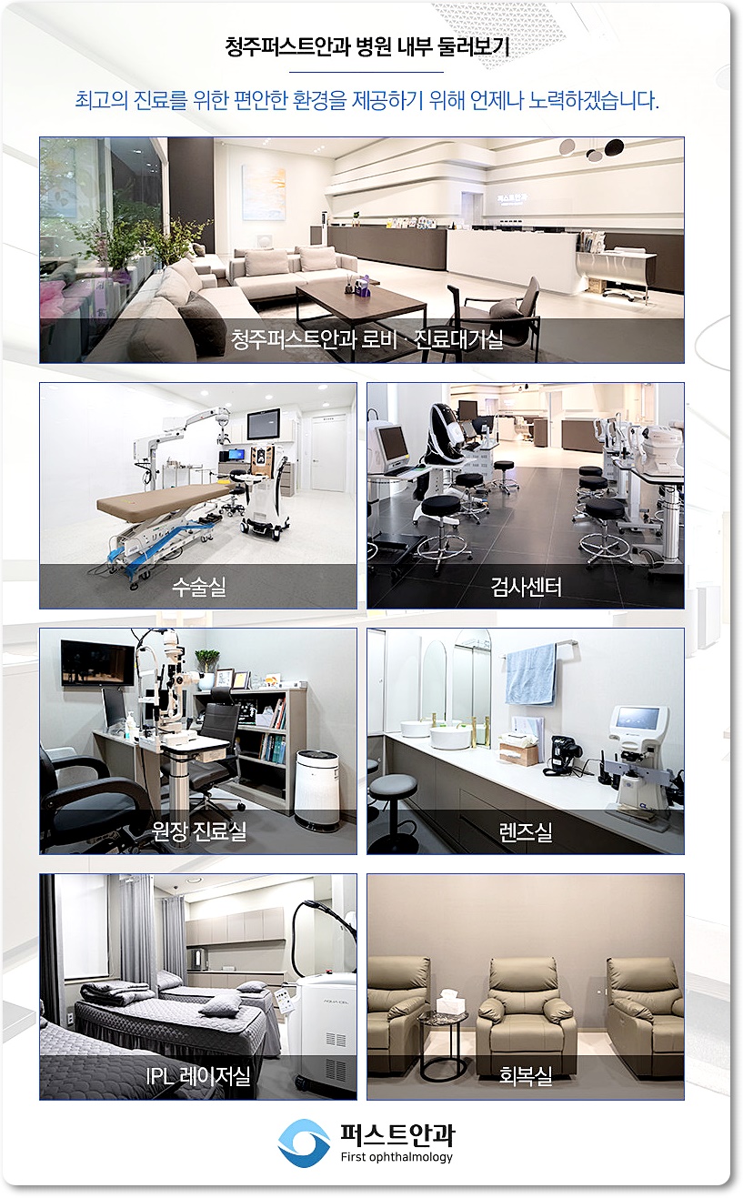 나의 눈을 위한 첫 번째 선택 청주 퍼스트안과 www.firsteyeclinic.co.kr 충청북도 청주시 흥덕구 대농로 47-2 낙희호텔 2층