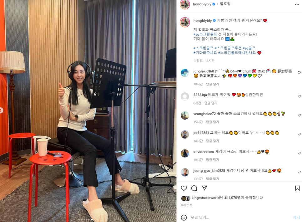 녹음 작업 ‘SG골프’ 스크린골프 홍재경 아나운서와 함께한 댓글