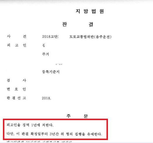 A씨가 동종 전력으로 집행유예를 받은 판결문!