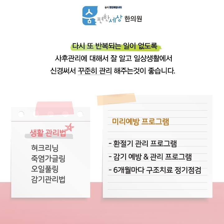 만약 위와 같은 증상이 있는 단계라면 구분하면서 필요한 조치를 해 나가지 않으면 안 되겠네요.