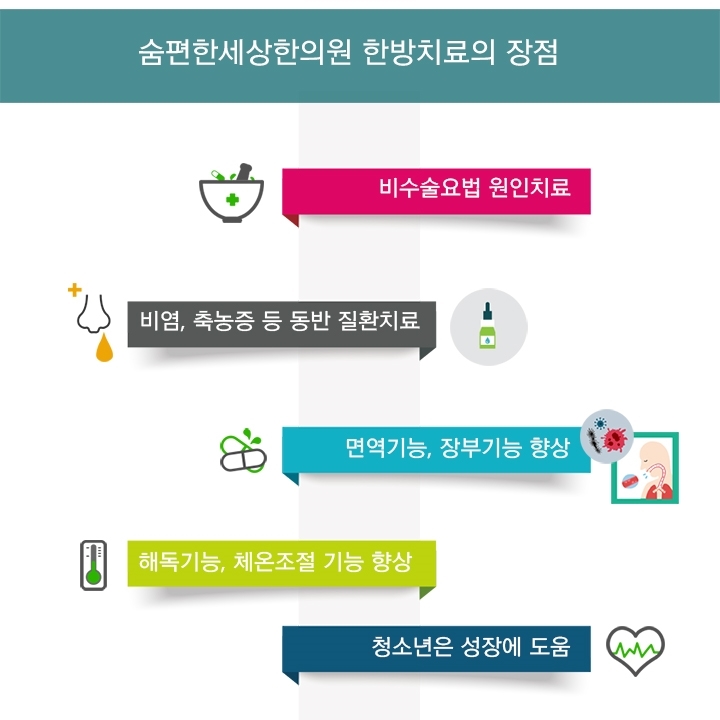 특히 성장기 아이들에게서 발생할 경우 성장장애나 학습장애 등으로 이어질 수 있으니 이 또한 유의해야 합니다. 또한 전신에 피로가 걸린 것 같은 느낌을 일으키기도 합니다. 컨디션 불량, 두통, 미열, 오한 등의 반응을 일으키는 질환이기도 한 만큼 평소 면역력 관리에 더욱 신경을 써야 합니다.