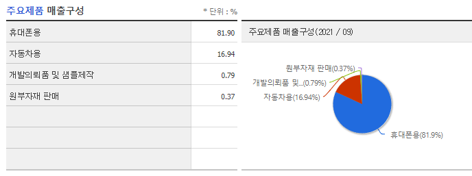 주요 매출 구성은 휴대전화용 카메라 모듈이 81.9%, 자동차용 카메라 모듈이 16.9%를 차지하고 있습니다.투자포인트는 2022년 국내 카메라모듈 업황이 회복되고 성장시기를 맞을 것으로 예상됩니다.MCNEX의 삼성전자 카메라 모듈 평균 공급 단가가 상승하고 구동계 점유율이 확대되어 매출액과 영업이익이 2019년 이후 최고의 실적을 달성할 것으로 예상됩니다.