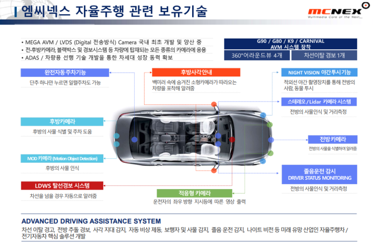 그럼 오늘은 자율주행, 카메라모듈, 드론 등의 관련주인 MC넥스에 대해서 알아보도록 하겠습니다.
