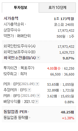 현재 시가총액이 1조173억원으로 삼성전자의 스마트폰 판매량이 꾸준히 증가하고 중저가 스마트폰이 멀티카메라 추세에 있고 카메라 기반의 전장시장 및 광학식 지문인식 시장의 확대로 인해 매일 목표가 상향세를 보이고 있으나 단번에 오르기는 힘들 것으로 보이는 점, 6만원대 전후에서 매출목표를 세우면 좋을 것 같습니다.