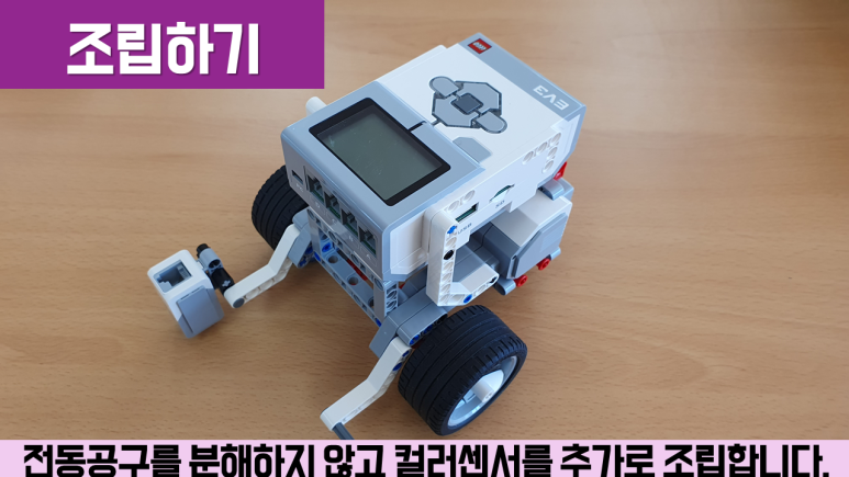 컬러 센서를 장착하는 라인을 레이싱하기 위해서는 컬러 센서를 조립하여 드라이빙 베이스에 장착해야 합니다. 조립도를 보고 조립을 먼저 합니다.