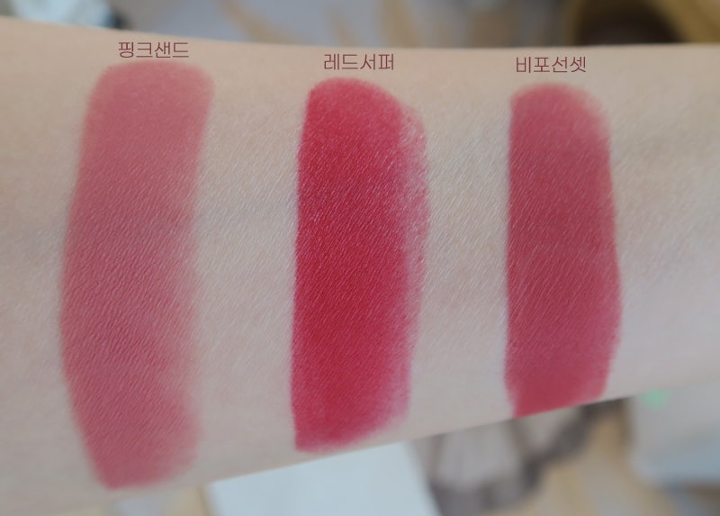 롬앤제로 매트 립스틱 쿨톤 3컬러 발색 비교