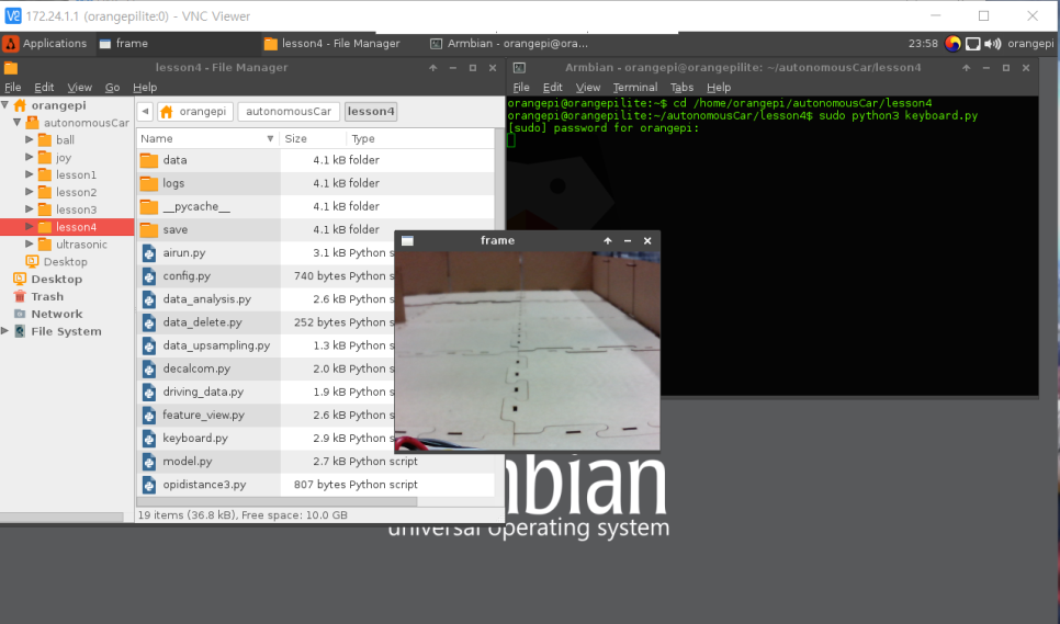 인공지능을 하기 위해서는 사용하는 모델을 훈련해야 합니다훈련시키기 위해서는 데이터가 필요합니다. 그래서 python keyboard를 이용하여 방향키로 조종하여 data sample을 획득합니다.