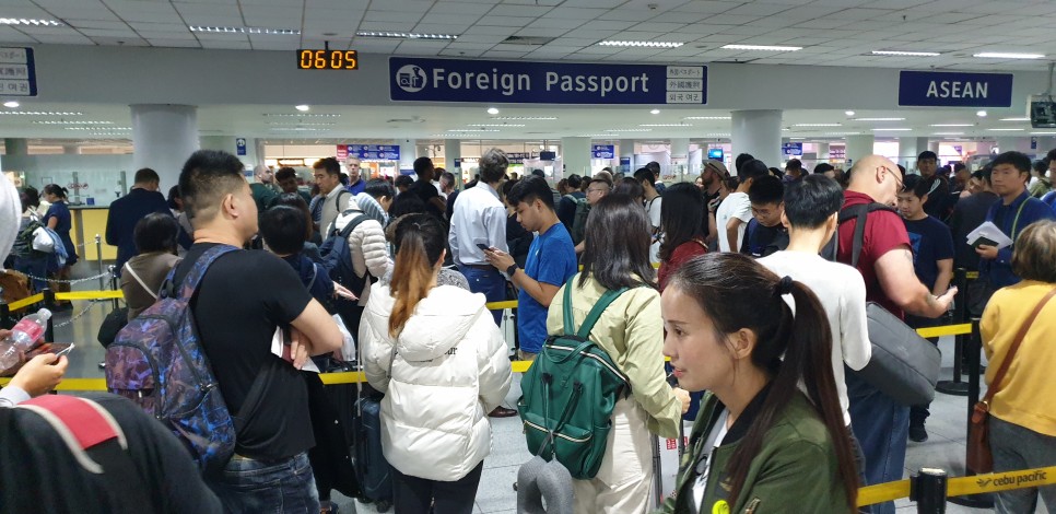 이제 괜찮은 줄 알았는데 출국 이미그레이션 줄이…