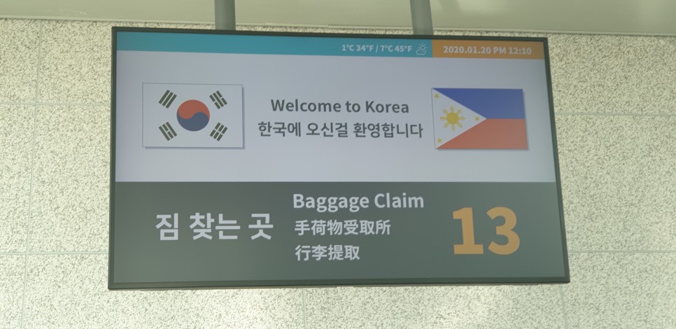 그리고 인천공항 도착!! 와우! 입구에서 한국으로 오신것을 환영합니다!! ^^