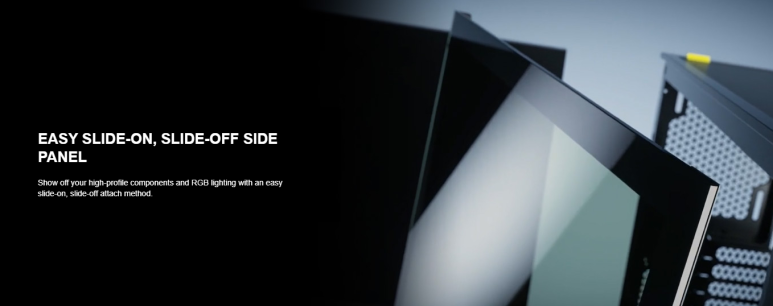 간편한 슬라이드 온, 슬라이드 오프사이드 패널 간단한 슬라이드 온, 슬라이드 오프 부착법으로 높은 프로필 구성 요소와 RGB 조명을 자랑해 주세요.
