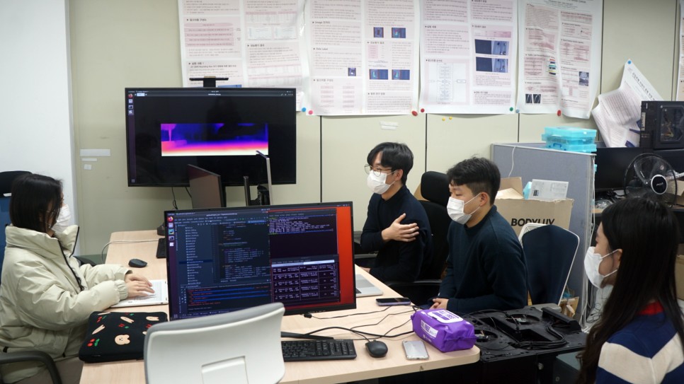자율주행자동차연구는연구실에서만공부하는것이아니라실제자동차에서센서를활용할수있어서눈앞에서결과를바로확인할수있습니다. 다른 연구실과는 다르게 더 재미있게 연구할 수 있다는 점을 알려드리고 싶습니다. 또한 코딩을 잘 모르거나 자신이 없는 사람도 충분히 노력하면 좋은 결과를 얻을 수 있기 때문에 지속적으로 관심을 가지고 도전하는 것이 좋습니다.