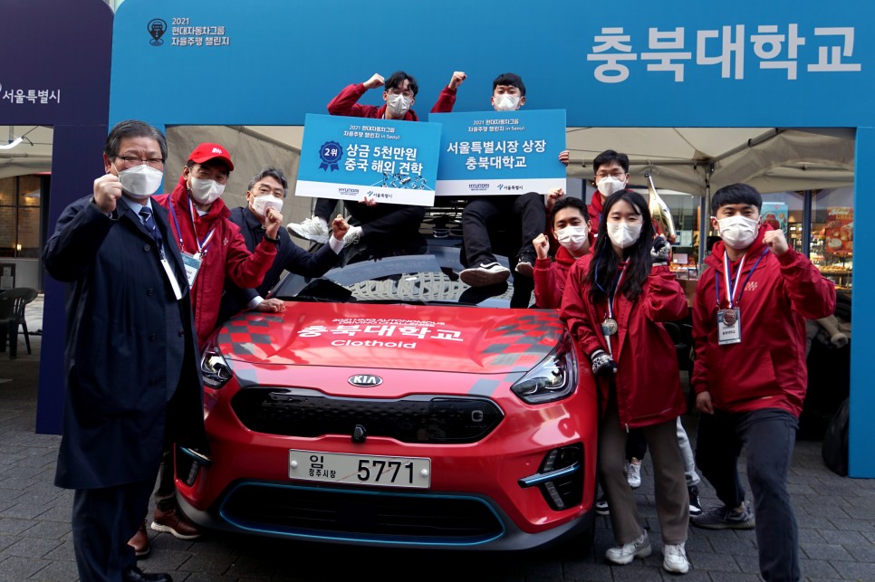 충북대는 미래 자동차 분야에서도 자율주행차와 관련해 높은 성과를 올리고 있다. 서울 상암 일대에서 열린 ‘2021 현대차그룹 자율주행 챌린지’는 미래 자동차 기술의 핵심 분야인 자율주행기술에 대한 대학의 연구 활성화와 연구인력 저변 확대를 지원하여 우수 인재를 발굴 육성하고, 차세대 자동차기술에 대한 한국 자동차산업의 기술발전을 도모하기 위해 진행된 대회로, 충북대 클로소이드팀은 현대차가 지급한 전기차를 자율주행자동차로 개조하여 2회 이동시켰다. 클로소이드팀과 자율주행 자동차의 현재와 미래에 대해 논의했다.