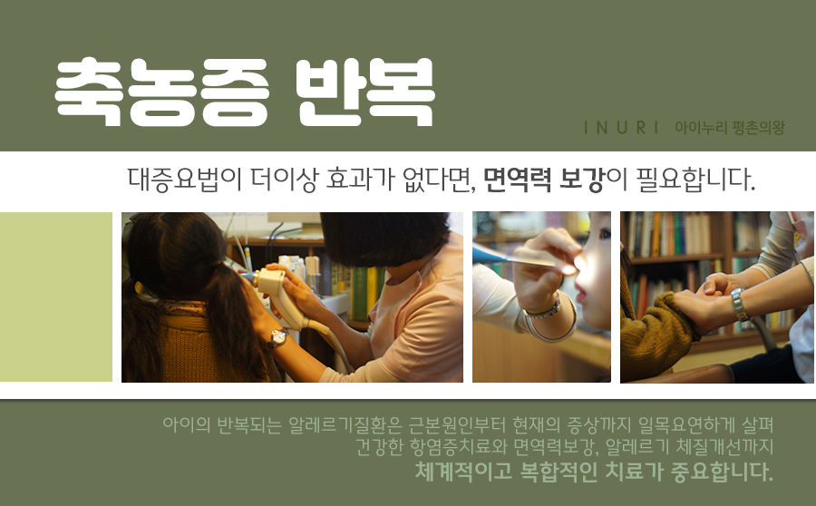 따라서 본 의료인력은 축농증의 증상으로 인해 찾아주실 경우 표면의 불편함만 바라보시는 것이 아니라 몸 깊은 곳에서 다양한 통증을 유발할 수 있는 주요 원인을 찾아내고 이곳에서 관리가 이루어질 수 있도록 정성을 다하고 있습니다. 그래서 코 안쪽의 위화감이 장기화되고 있고, 아이가 통증과 불편을 호소하고 있다면 하루라도 빨리 적절한 대처를 시작해 보십시오.