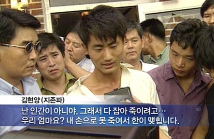 식인 이유에 대해 ‘지존파’ 행동대장 김현양은 “인간임을 포기하기 위해, 그리고 조직의 일원으로서 스스로 더 강해지기 때문”이라고 밝혔다.