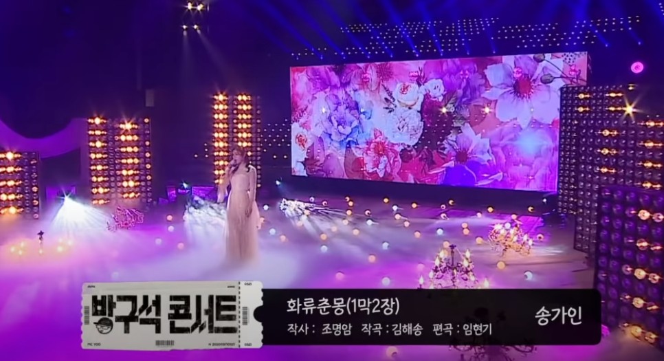 마지막으로 화류춘몽(1막 2장)입니다제 개인적인 생각이지만 송가인에게 가장 어울리는 노래가 아닌가 싶습니다송가인의 가집에 들어있지는 않지만 꼭 한번 따로 들어봐주세요.매력적인 보이스가 노래를 흡수하는 느낌이네요