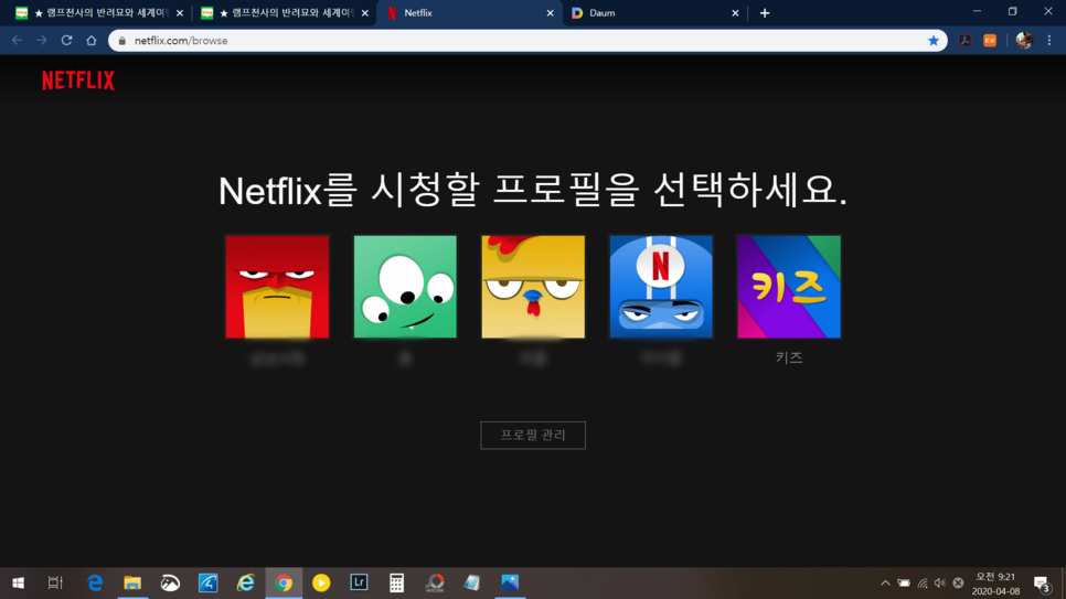 넷플릭스 프리미엄 요금제를 사용 중이라면 로그인하면 어떤 계정을 사용 중인지 선택하게 된다.즉, 4명이 다른 서브 어카운트로 각자 이용할 수 있는 시스템인데, 정말로 좋은 서비스다.