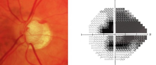 (녹내장 환자의 시신경 및 시야)