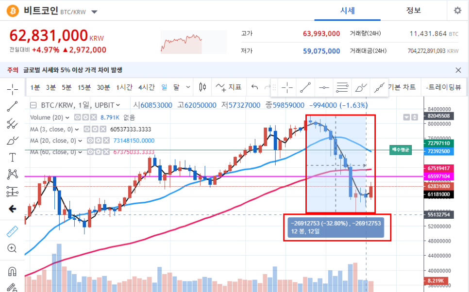 지금 해외에서는 제도화 움직임이 본격화되면서 가상자산의 정의와 규제권한을 설정하는 등 안전자산으로 자리매김하려는 움직임이 있는 반면 한국에서는 폐쇄를 한다, 세금을 징수한다, 피해를 책임지지 않는다 등 회피만 하려고 세금만 징수하려는 것이 투자자들에게 문제가 되고 있는 것입니다. 정부가 어느 정도 규제를 해주고 시세조종이나 돈세탁을 하는 불법자금을 조치하려 하지 않고 국민이 투자한 금액을 세금만 징수하려 하니 타당하지 않은데요. 그런 가운데 은성수 금융위원장의 언급으로 8일 동안 무려 32%나 폭락하는 사태가 벌어진 겁니다.