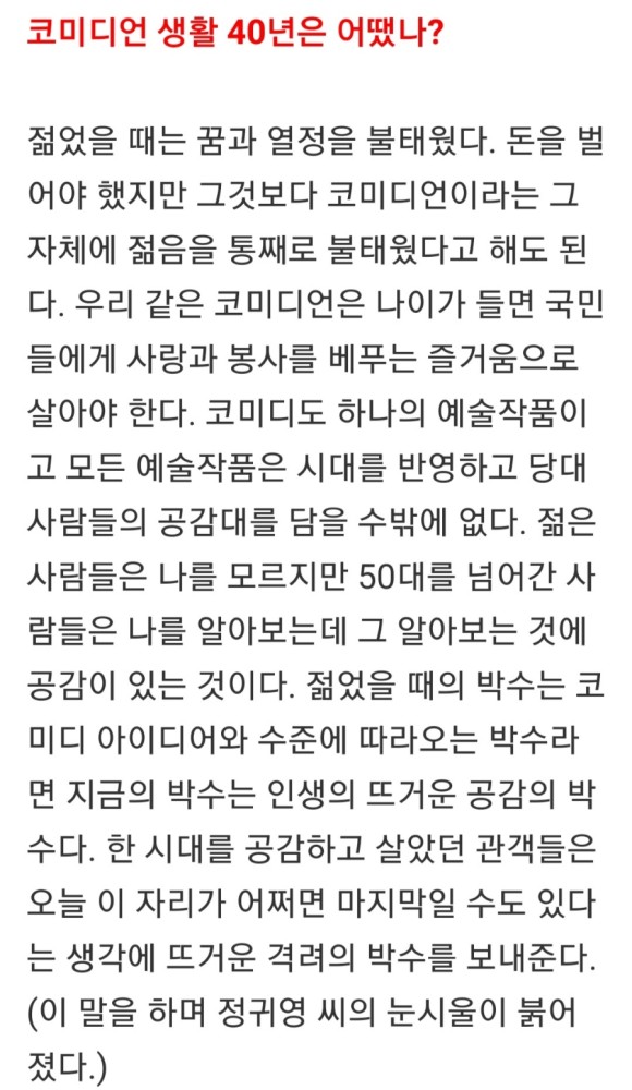 출처 – 네이버 귀영오빠와 ITV(경인방송)에서 정말 많은 프로그램을 했습니다.세월이 벌써 20년이나 지나 뵈었는데 마치 어제 본 것처럼 편안했습니다.지금은 코미디계의 원로가 되셨기 때문에 각자의 분야에서 정말 열심히 살았다고 생각합니다.귀중한 발걸음을 내딛어 감사합니다.저희 제품을 먹으면서 항상 건강하고 활발한 활동을 했으면 좋겠습니다.