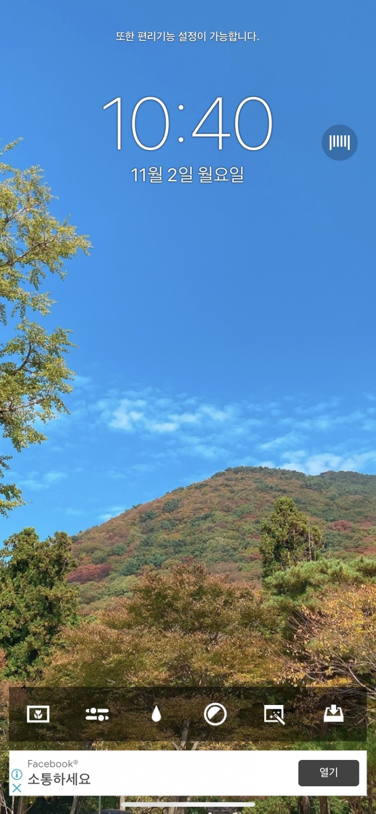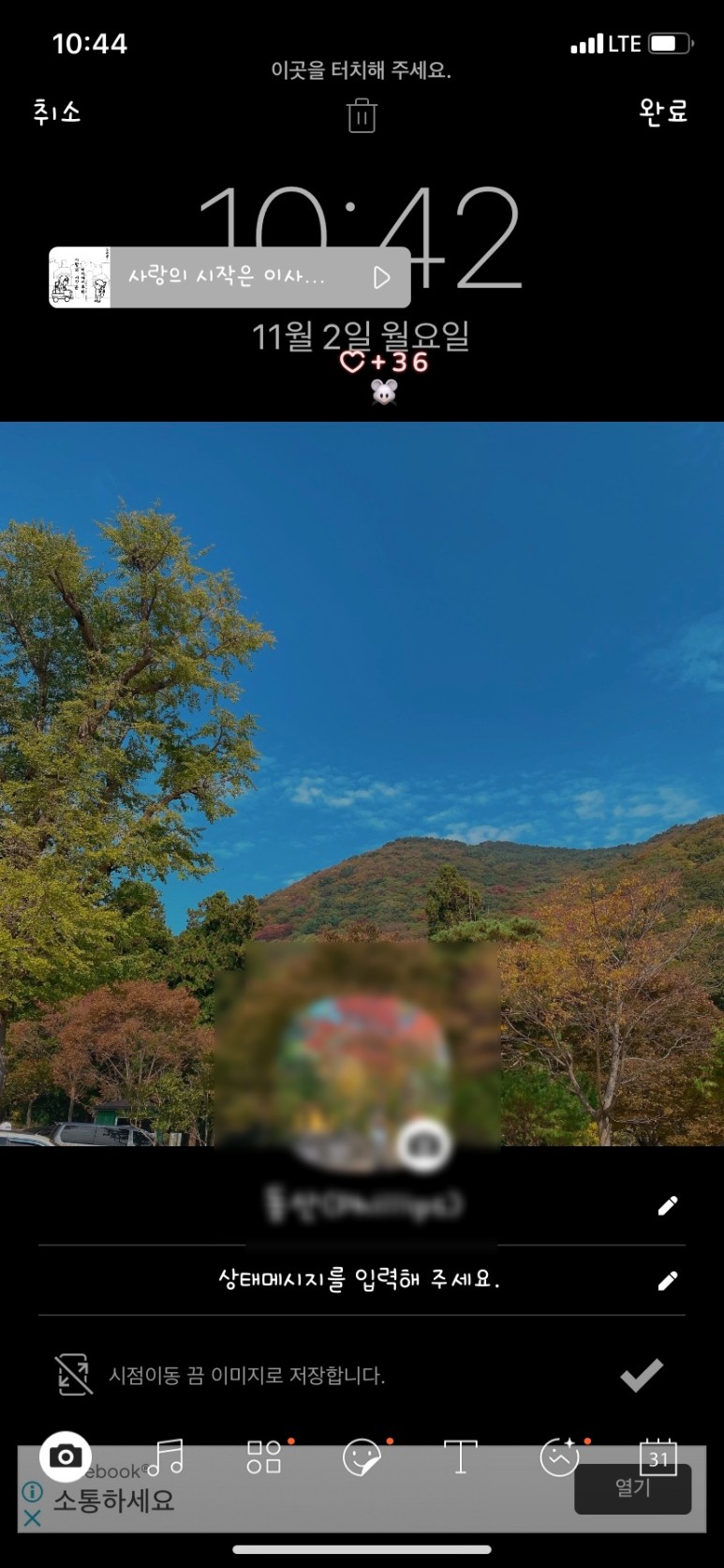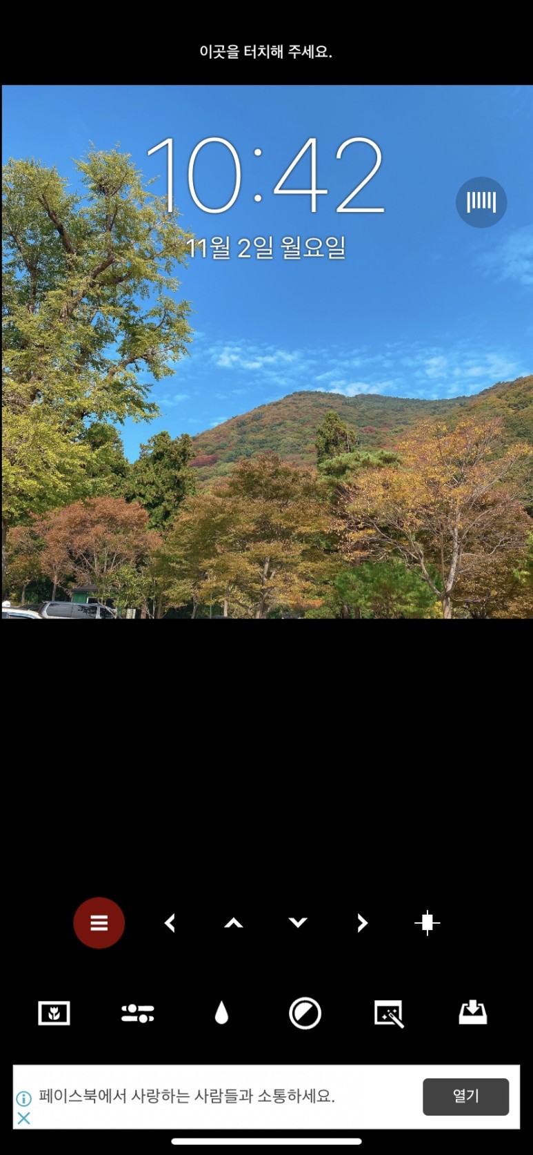 하단의 꽃모양 버튼을 탭하여 수정할 사진을 불러옵니다.