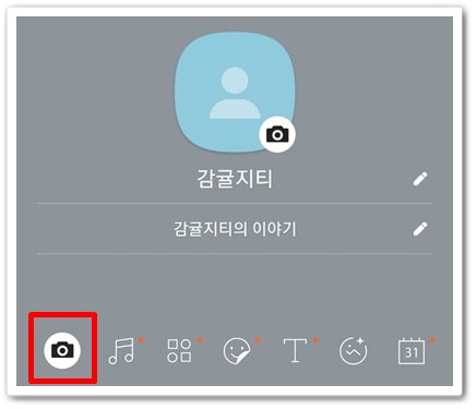 카카오톡 디데이 설정도 정말 쉽게 할 수 있어요 먼저 배경사진을 바꾸기 위해서 카메라 모양의 아이콘이 아니라 하단의 맨 오른쪽에 있는 달력모양의 아이콘을 누르세요.