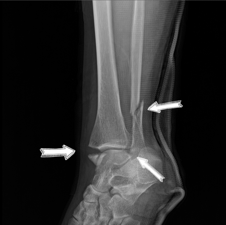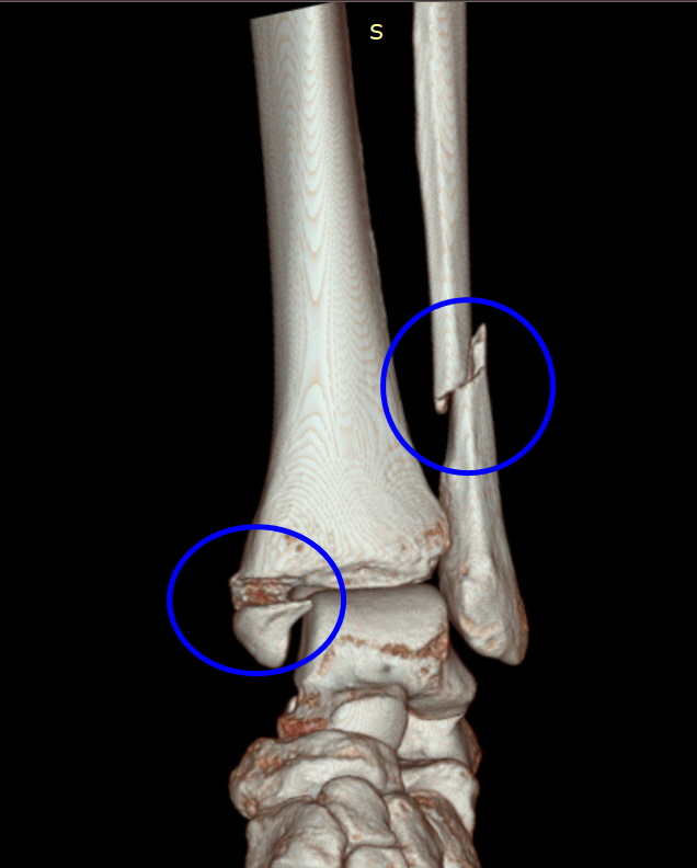 안녕하세요. 오늘 행사는 삼복골절 교통사고 합의 사례입니다.삼복사는 복숭아뼈와 정강이뼈 발목 뒤쪽의 후과를 일컫는 말입니다. 3개의 과(뼈에서 돌출된 부분)를 의미하기 때문에 ‘삼과골절’이라고도 합니다. 덧붙여서 바깥쪽 도골은 경골외과, 안쪽 도골은 비골로 구성됩니다. 위 영상은 전면부이므로 후과골절은 확인이 되지 않습니다. 아래의 X-RAY 영상을 보실 수 있습니다.