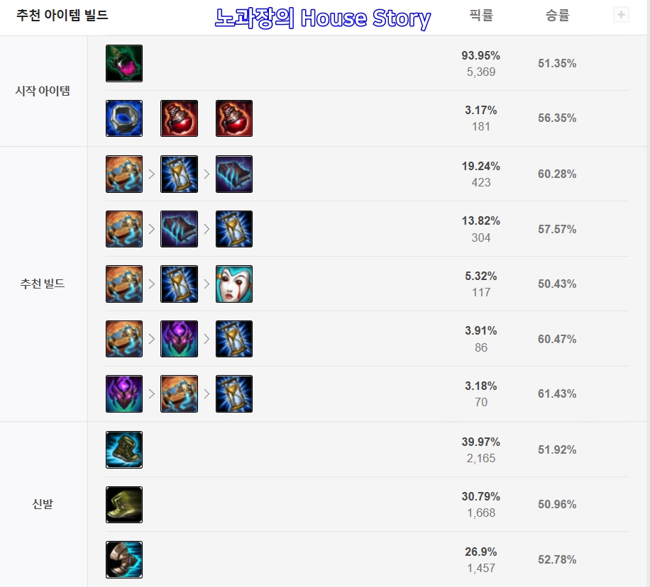 위의 픽률 승률 등에 관한 자료는 op.gg를 참조하시기 바랍니다.